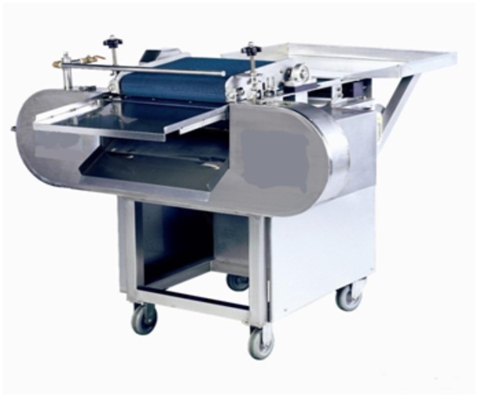 原理:水平橫向切片機(jī)設(shè)備是對(duì)鮮肉進(jìn)行多片水平切割。上下輸送帶輸送輸送料,刀架運(yùn)動(dòng)完成橫向切片。