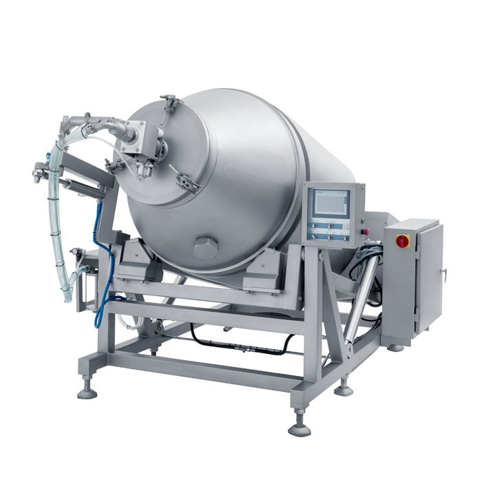 原理:真空滾揉機(jī)是食品廠家用來生產(chǎn)肉食制品的主要加工設(shè)備,用途是將嫩化后的原料肉通過滾揉、按壓和腌制,與輔料、添加劑等在真空狀態(tài)下拌合均勻