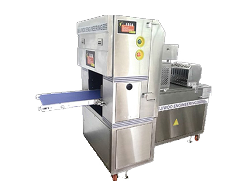 原理:高速凍肉切片機(jī)設(shè)備的刀片行星軌道運(yùn)動(dòng)切割,用于大塊凍肉的切片。