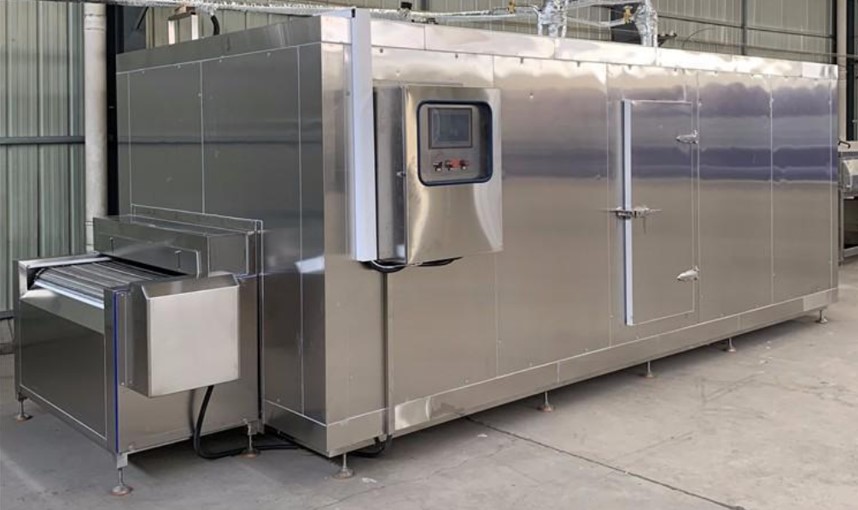 原理:液態(tài)速凍隧道是利用液體傳導(dǎo)制冷的快速凍結(jié)設(shè)備,其原理是將被凍結(jié)物料浸泡在低溫冷劑中,實(shí)現(xiàn)快速凍結(jié)。